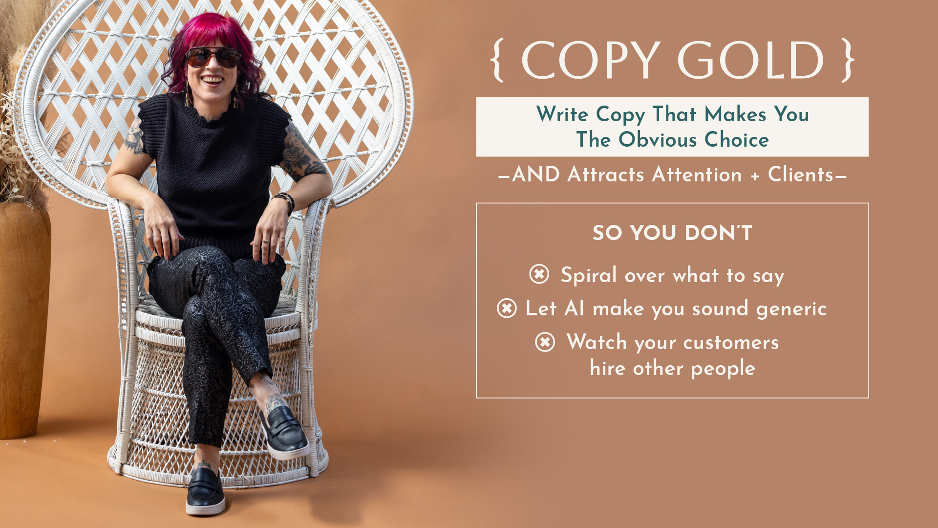 My team and I built Copy Gold to be an extraordinary experience—one that levels up your confidence, your copy, and your ability to attract the best type of clients….without ever apologizing for your worth, what you have to say, or sounding sleazy and weird.